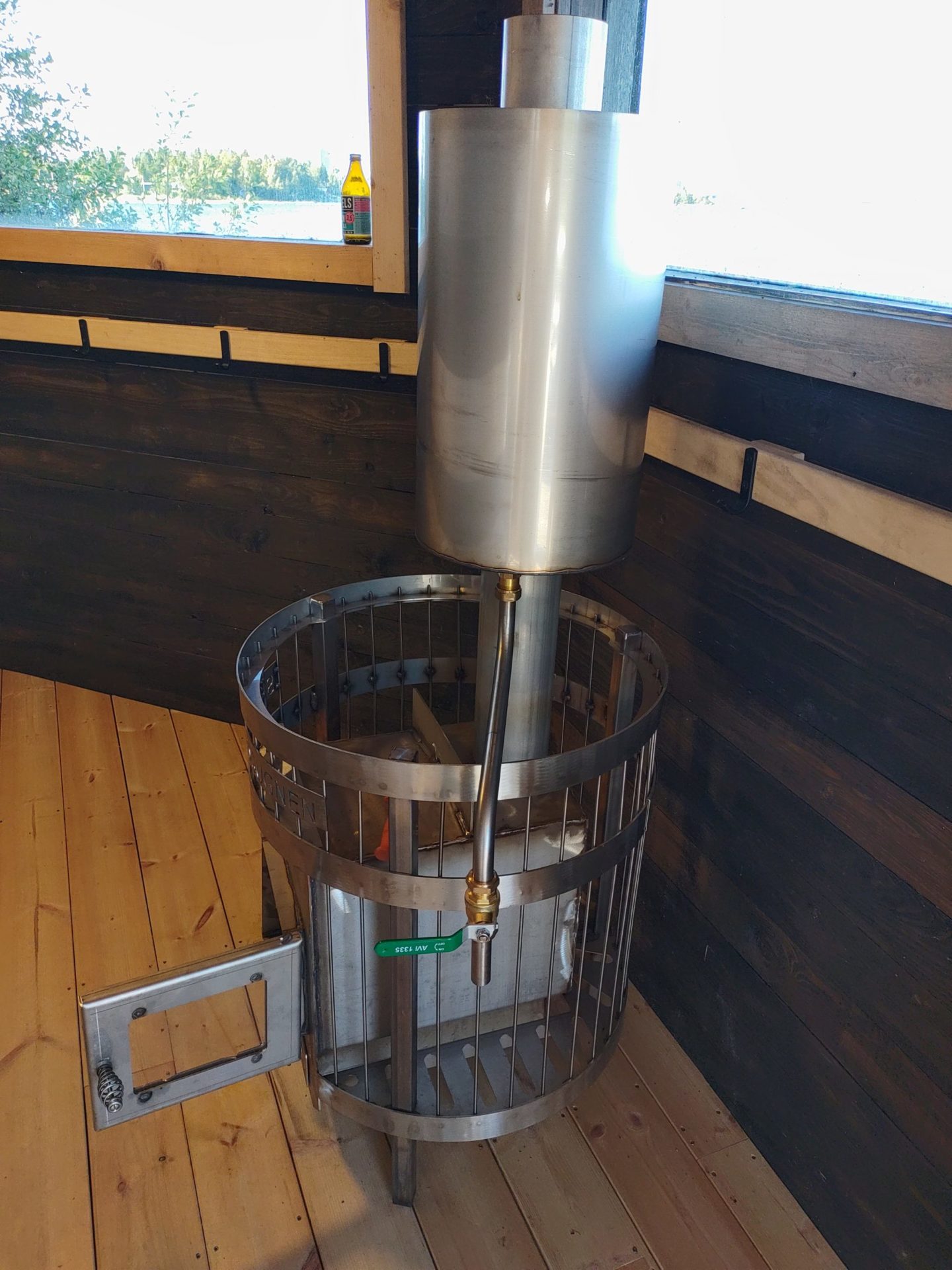 Kuva 16. Bredvikin saunan uusi, komea kiuas odottaa kiuaskiviä