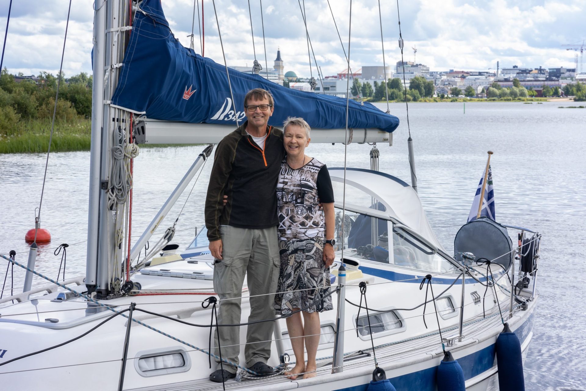 Kuva 1. Pekka ja Leena Sofia II:n kannella Oulun Hietasaaressa (kuva Tuomo Tapanila / Artep)